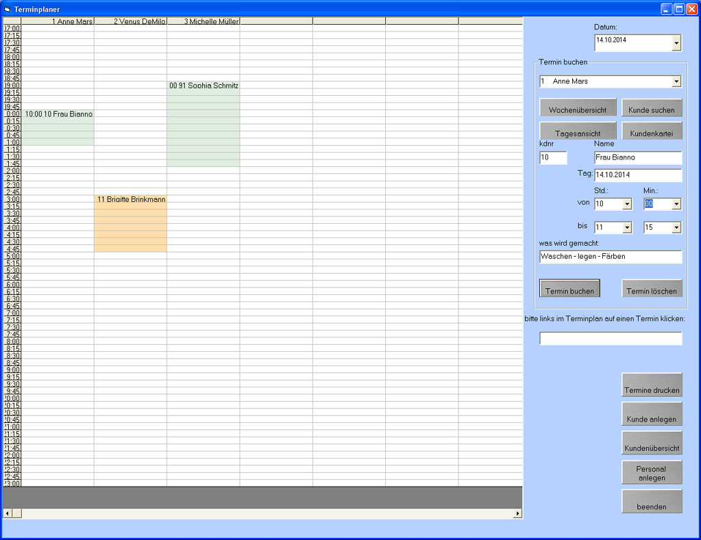 Features standard: Terminplaner mit Tages und Wochenschau - Kundenauswertung - einige statistische Auswertungen